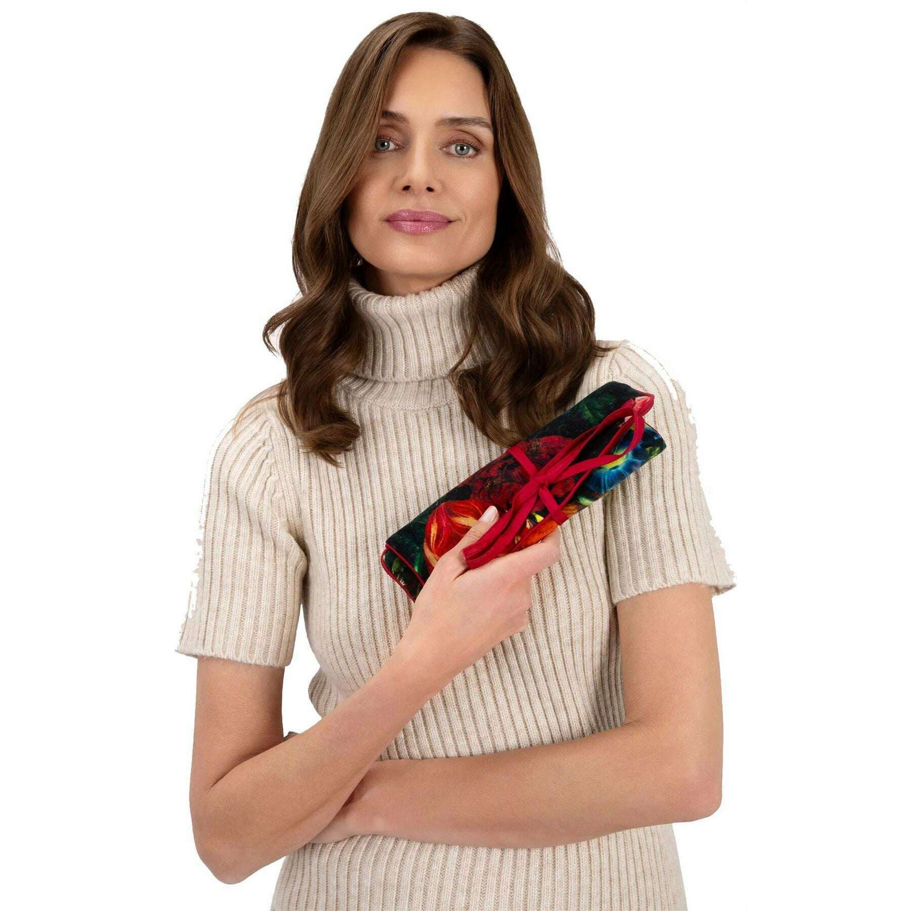 Perfect for women is this Powder chocolate brown opulent florals jewellery roll, it is also made from 100% cotton velvet . It measures 21cm(height) x 25cm(width). All the jewellery boxes come complete with powder tags. The Powder Opulent Florals Jewellery Roll - Chocolate Brown is a practical and elegant way to store your jewellery as it can be rolled up into a compact form. This makes it an ideal travel companion and can easily be stored in your overnight bag or suitcase. Detailed beautifully with a floral design and its soft velvet texture, this roll is a must have.