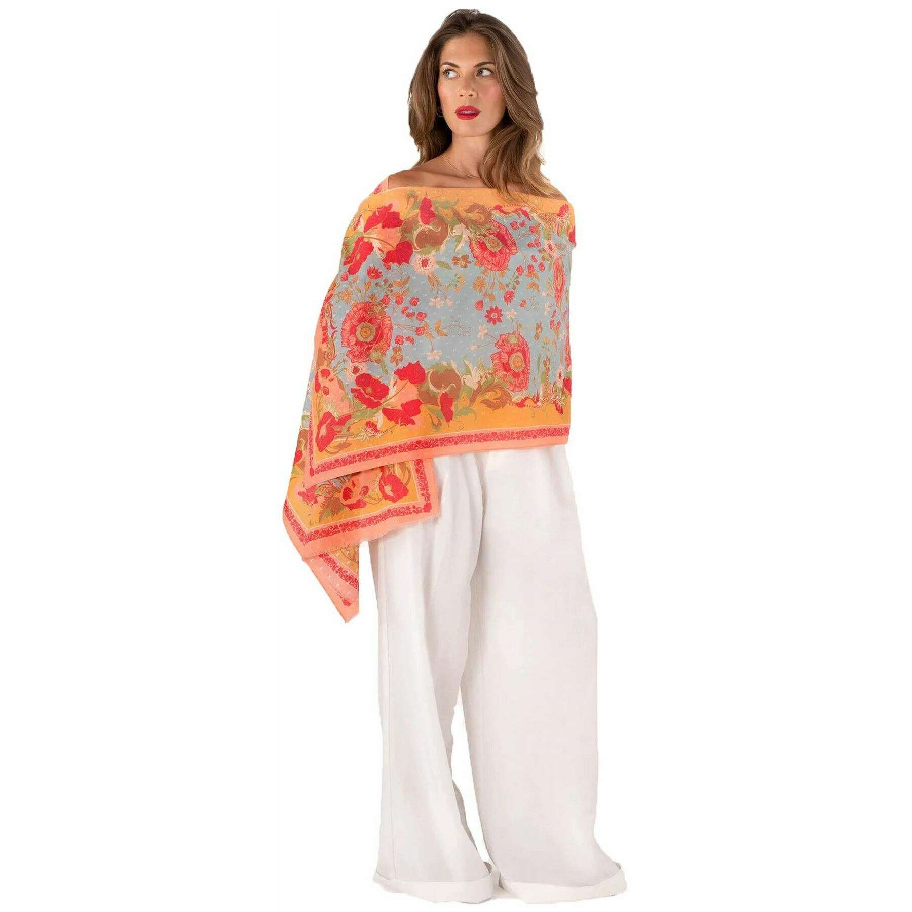 Powder Paisley Poppies Cotton Scarf - Yellow/Blue/Pink