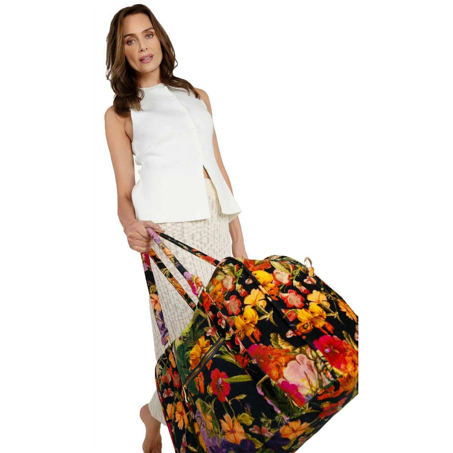 This women's posy luxe weekender bag by the brand Powder is made from 100% cotton velvet and is showcased in navy. It measures 42cm(height) x 31cm(width) x 18cm(depth). All the bags come complete with powder tags. The Powder Posy Luxe Weekender Bag - Navy is a practical and diverse bag perfect for weekends away or travelling. The stunning design adds timeless flair, and the twin carry handles and long adjustable shoulder strap make it a comfortable carry. This piece offers optimal storage with its large main compartment and exterior pocket for all of your smaller essentials.