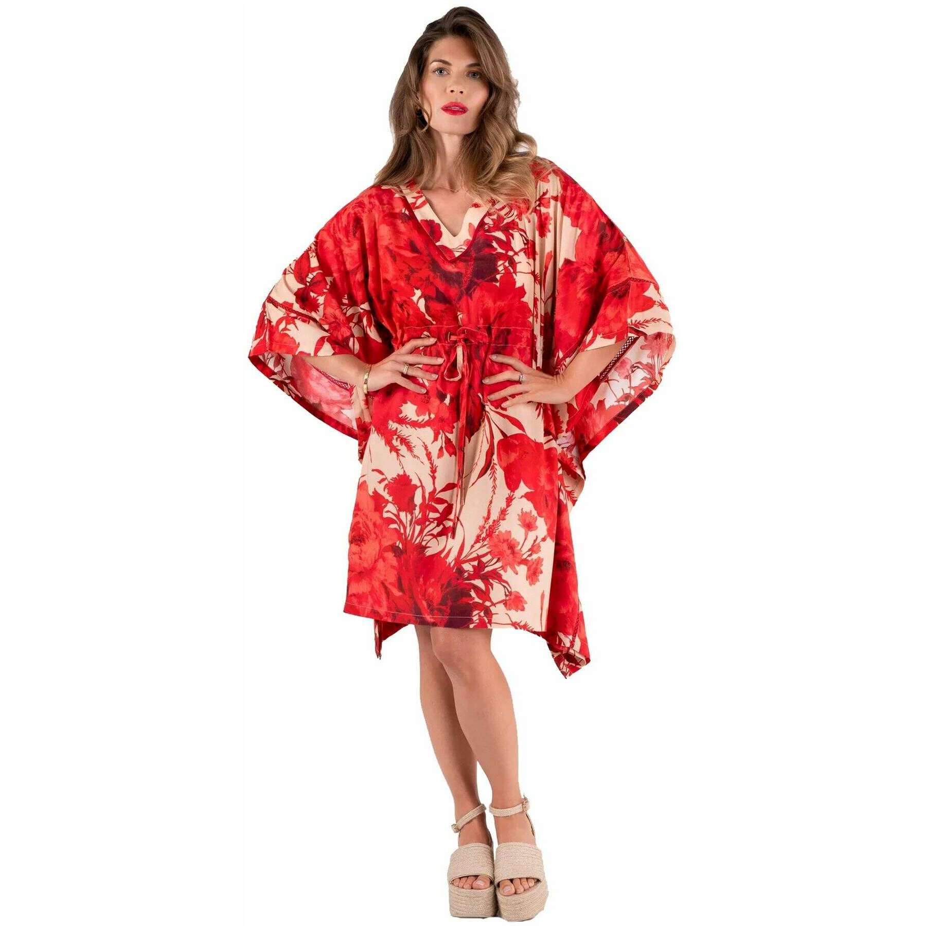 Powder Rouge Blooms Beach Cover Up - Red/Beige