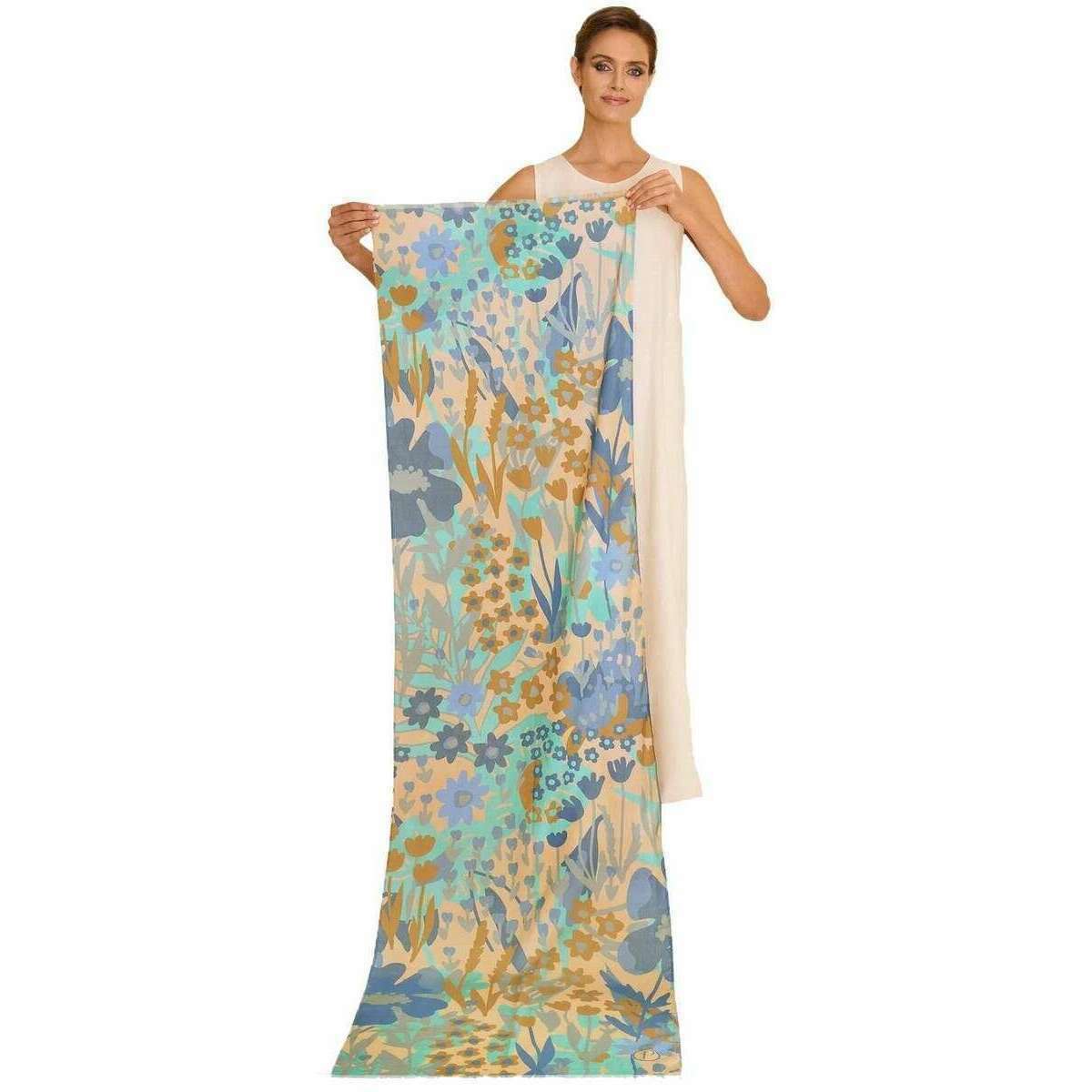 Powder Springtime Floral Cotton Scarf - Denim Blue