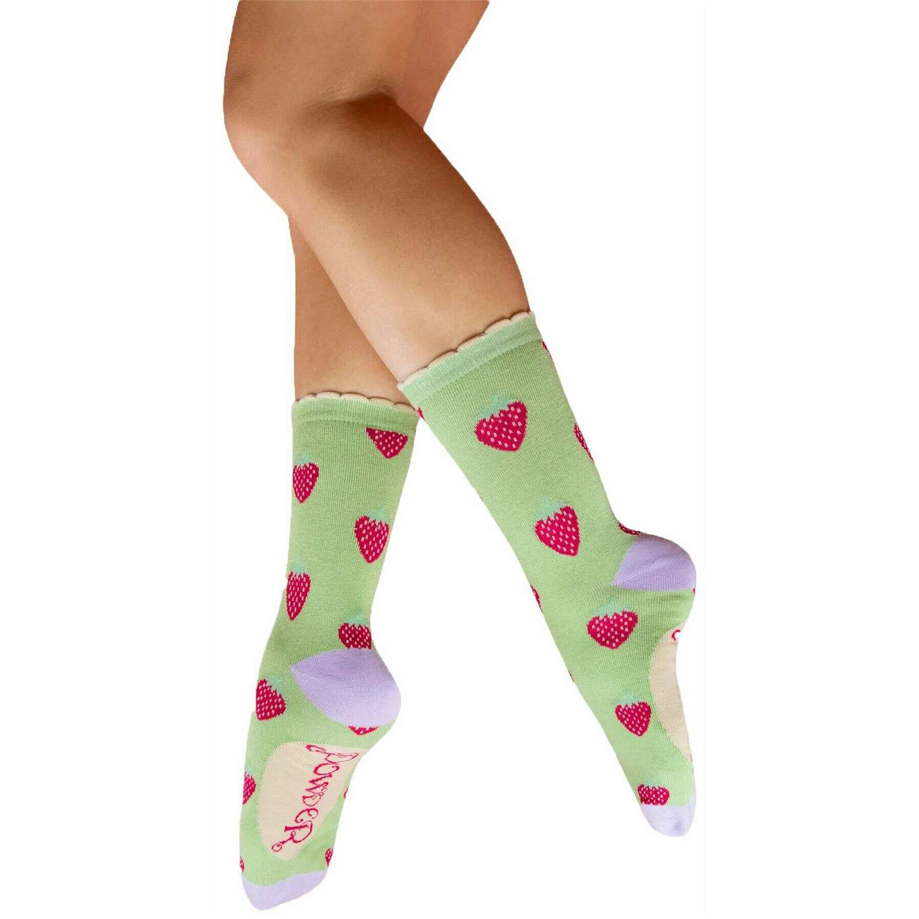 Powder Succulent Strawberries Ankle Socks - Green/Red/Purple