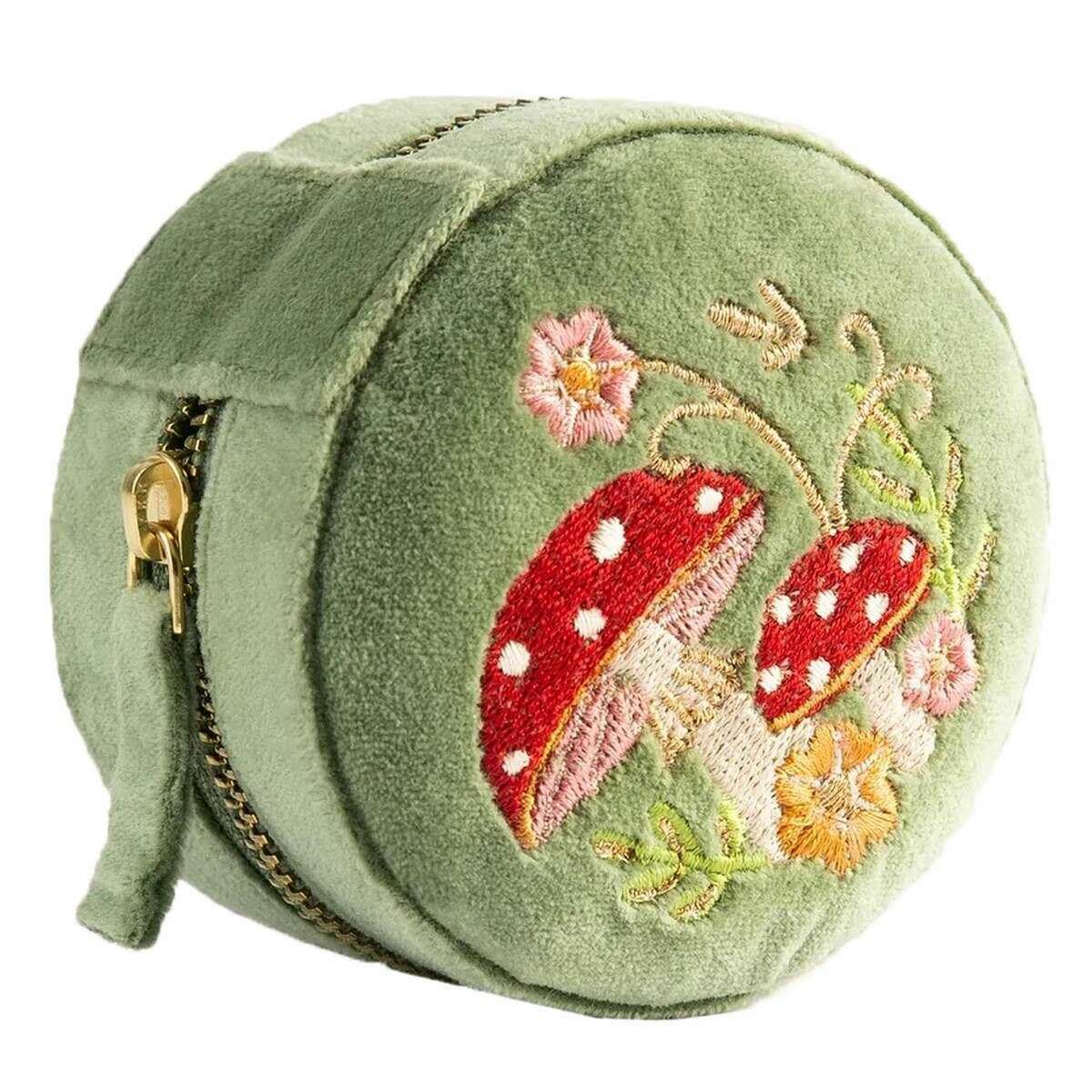 Powder Toadstools Round Velvet Jewellery Box - Sage Green