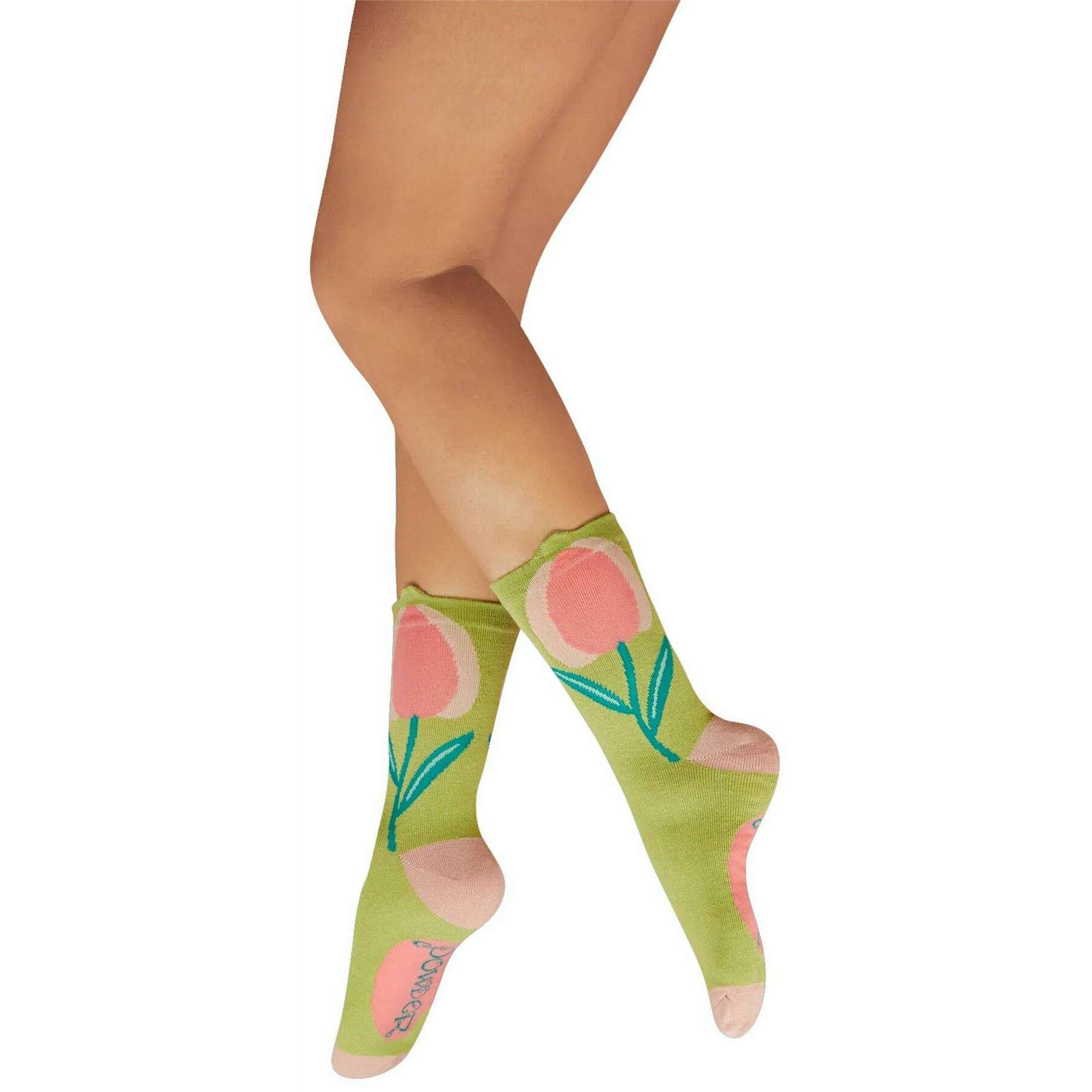 Powder Tulip in Sage Flower Top Ankle Socks - Green/Pink/Blue