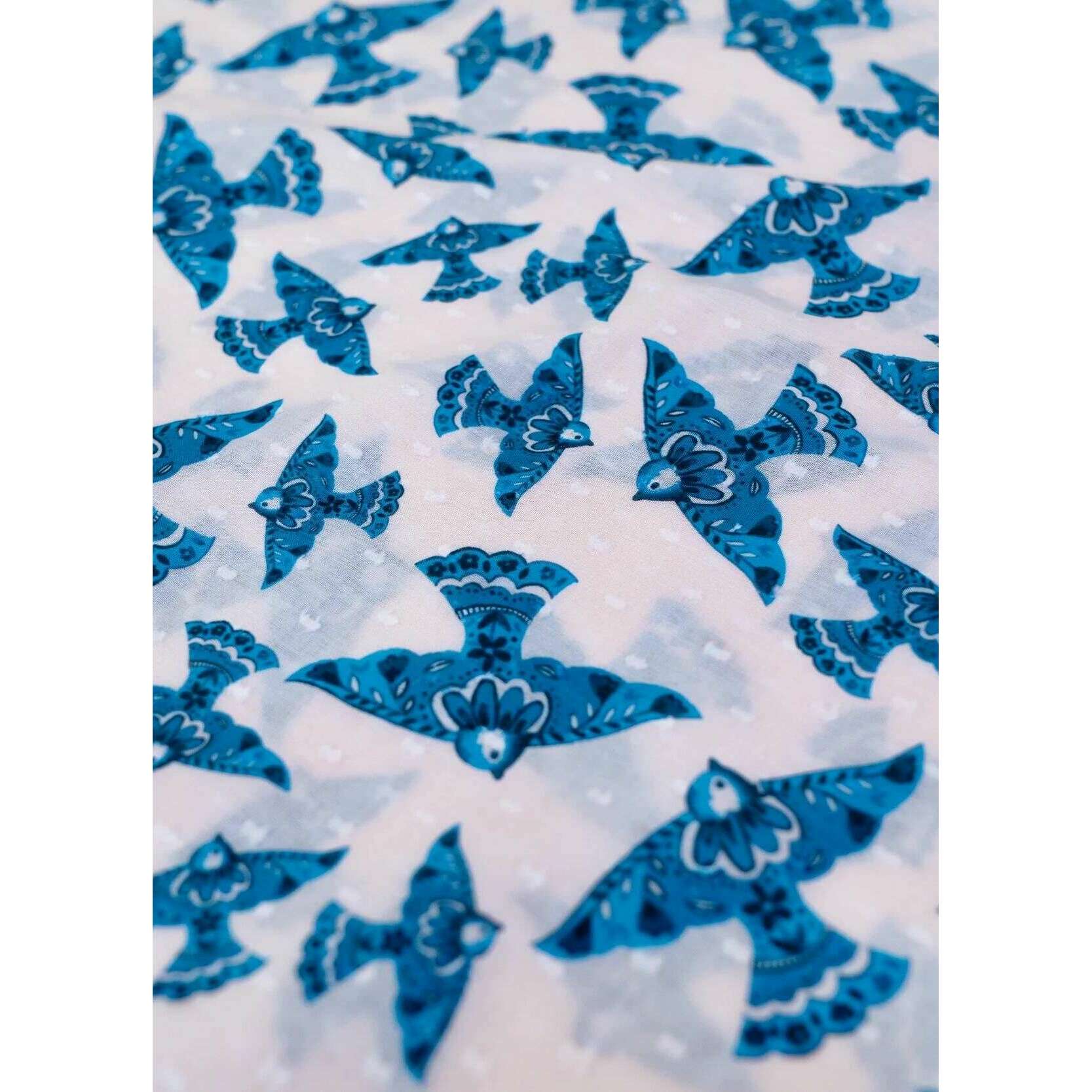 Powder Watercolour Birds Infinity Scarf - Blue/Beige