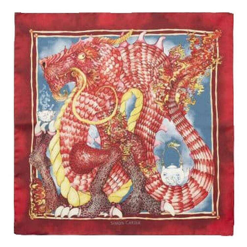 Simon Carter Dragon Pocket Square - Red/Blue/Yellow