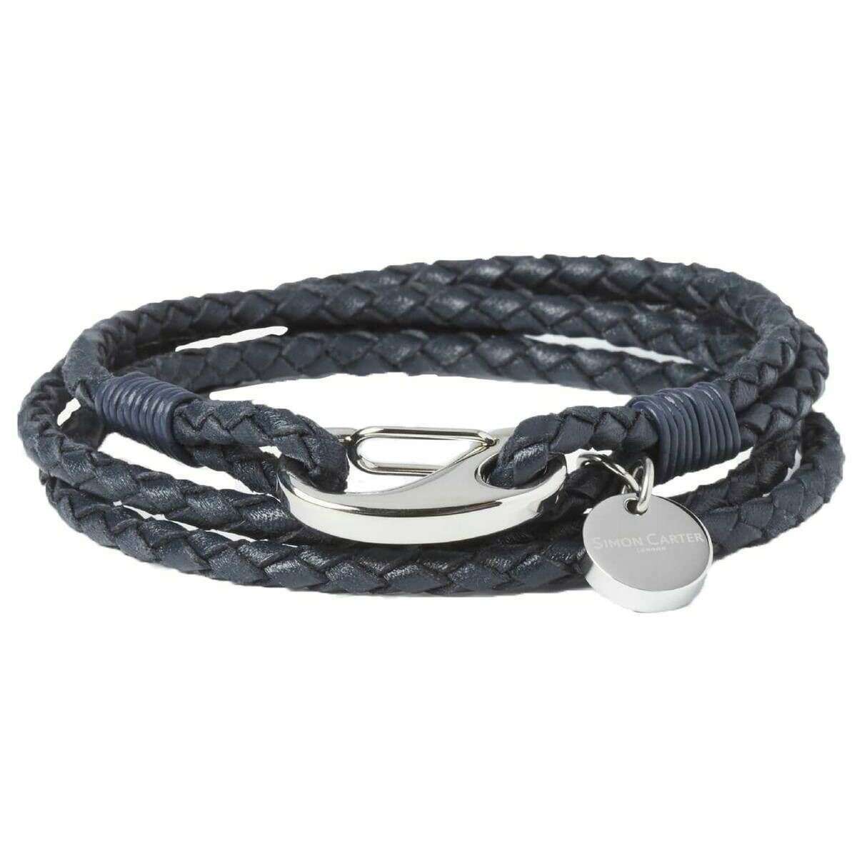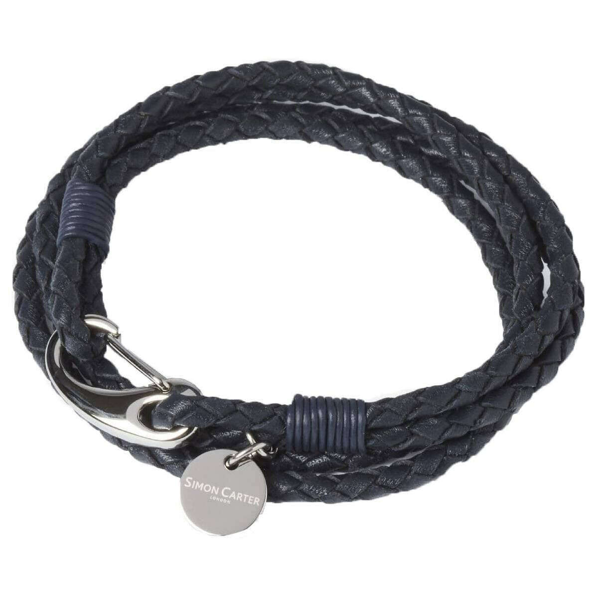 This padstow bracelet for men is fashioned by the brand Simon Carter in a blue colour and is made from stainless steel and leather. All the bracelets come complete with simon carter packaging. The Simon Carter Padstow Bracelet - Navy Blue/Silver is perfect for casual everyday wear. This bracelet features a trendy blue woven design, which wraps around your wrist twice. A lobster claw clasp ensures this bracelet stays firmly on your wrist!