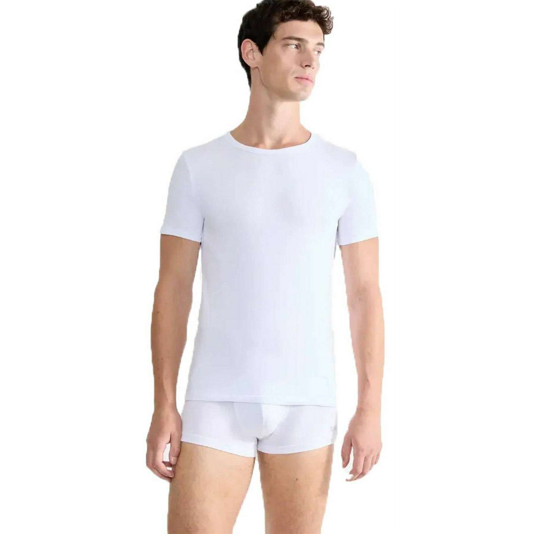 This men's go abc 2.0 2 pack o-neck t-shirt has been made from 95% cotton and 5% elastane, featured in a white colour and is from the brand Sloggi. Also the white t-shirt is designed in a plain pattern, It is recommended to machine wash at 40 degrees to keep this t-shirt in good condition. 2 pack t-shirts are value for money ensuring they are a good buy, All the t-shirts come complete with sloggi packaging. The Sloggi GO ABC 2.0 2 Pack O-Neck T-Shirt - White perfect for wearing underneath your beloved t-shirts or for wearing on its own offers optimal comfort. The round neck and slim fit design gives a versatile modern and contemporary look that can be styled in endless ways. Crafted with a cotton and elastane blend offers a soft and breathable wear whilst giving you freedom of movement during your everyday travels.