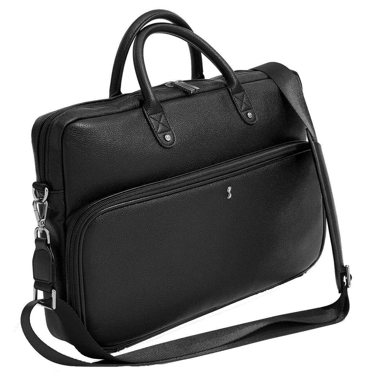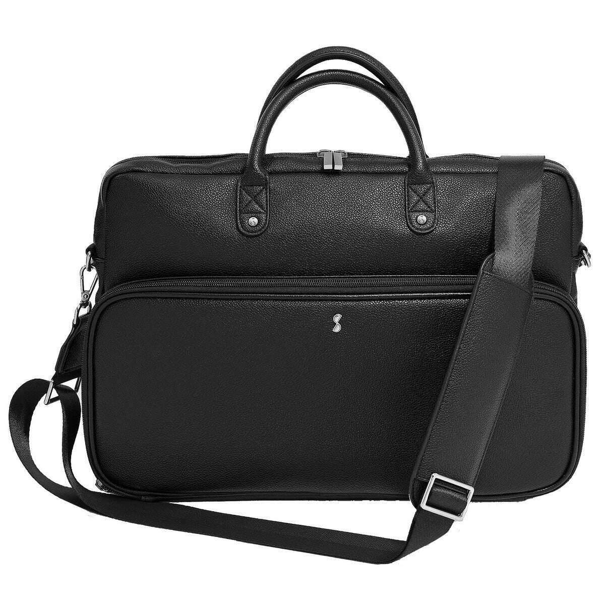 Perfect for women is this Stackers black 16inch laptop bag, it is also made from faux leather. It measures 37cm(height) x 9cm(width) x 43cm(depth). All the bags come complete with stackers packaging. The Stackers 16inch Laptop Bag - Black is a must have when on the go! This classy black laptop bag features stationary space, multiple pockets and a large external back pocket. Perfect for everyday use with its crossbody strap.