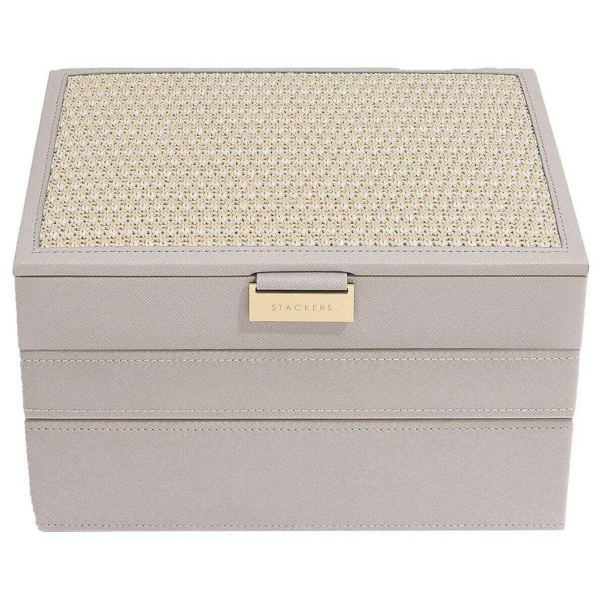 Stackers Classic Set of 3 Jewellery Box - Taupe Raffia