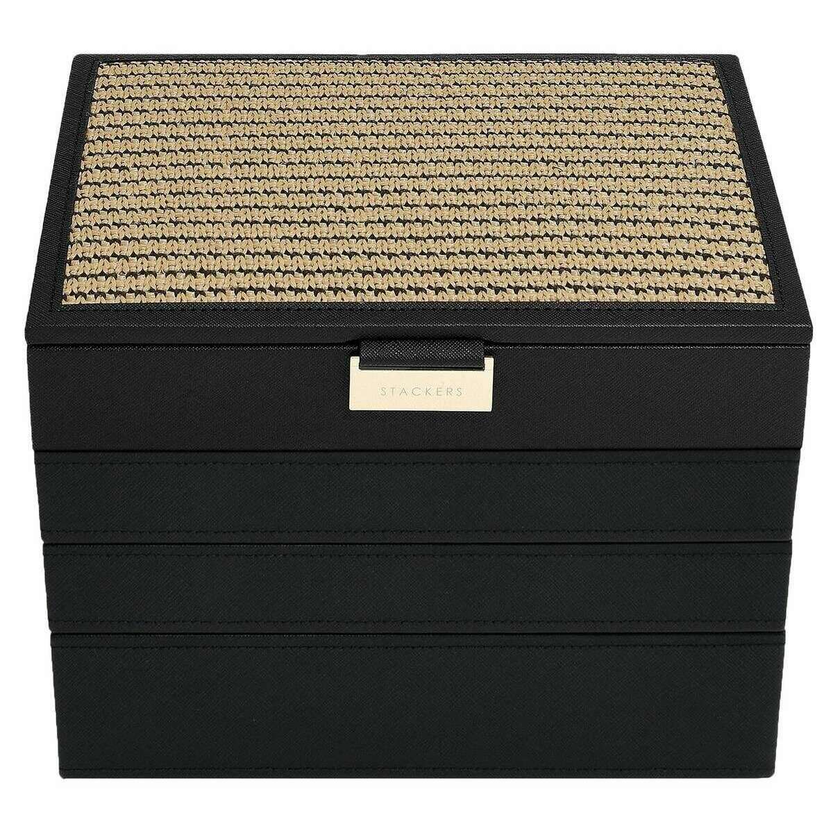 Stackers Classic Set of 4 Jewellery Box - Black Raffia