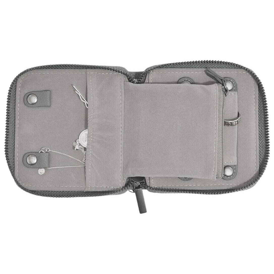 Perfect for women is this Stackers slate grey compact jewellery roll, it is also made from faux leather and velvet. It measures 2.5cm(height) x 11cm(width) x 11cm(depth). It is recommended to wipe clean to keep this jewellery box in good condition. All the jewellery boxes come complete with stackers packaging. The Stackers Compact Jewellery Roll - Slate Grey makes for the perfect travel companion. Its zip around design will keep your valuable pieces secure inside and the velvet interior will ensure they are kept pristine. It features storage for your rings, 2 necklaces or chains and a versatile pouch which can hold things such as cufflinks or tie pinks. Its compact silhouette makes it ideal for short trips as it can slip into your day to day bag.
