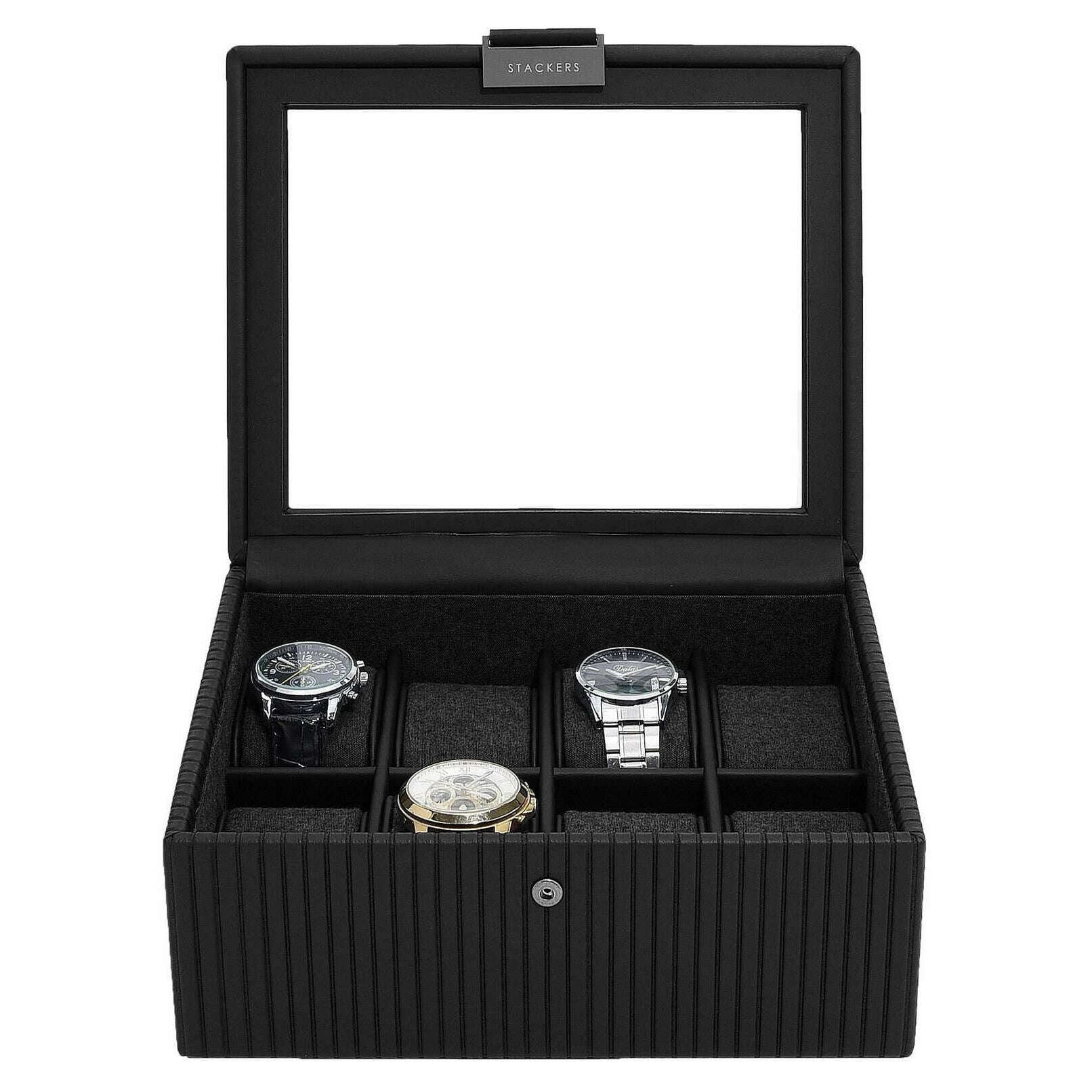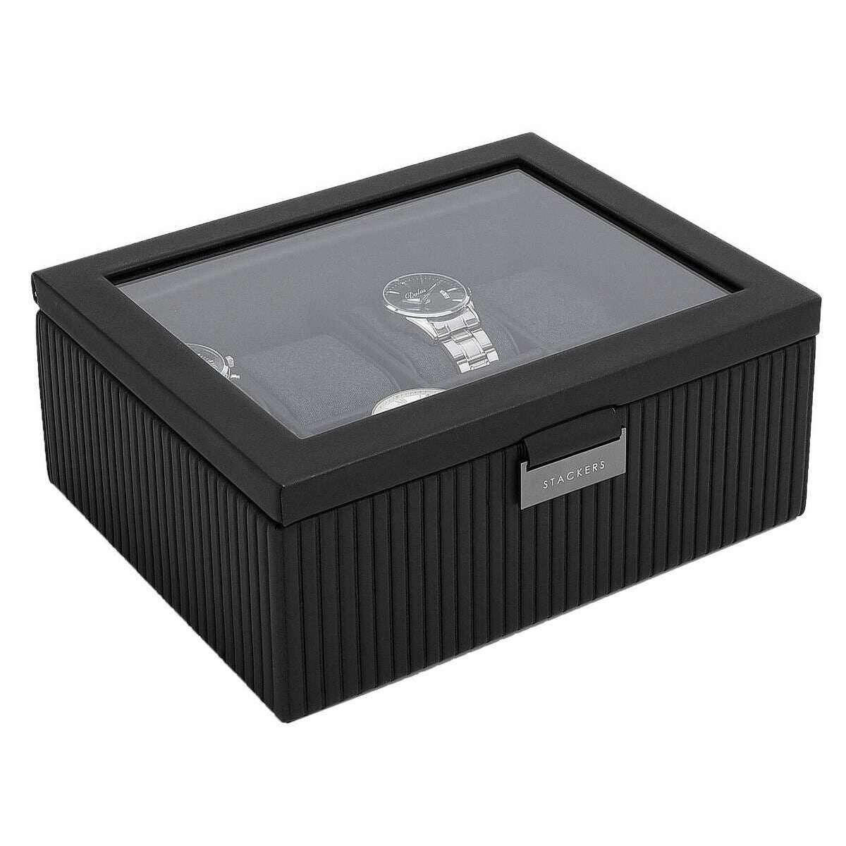 Stackers Fluted 8 Piece Watch Box - Black