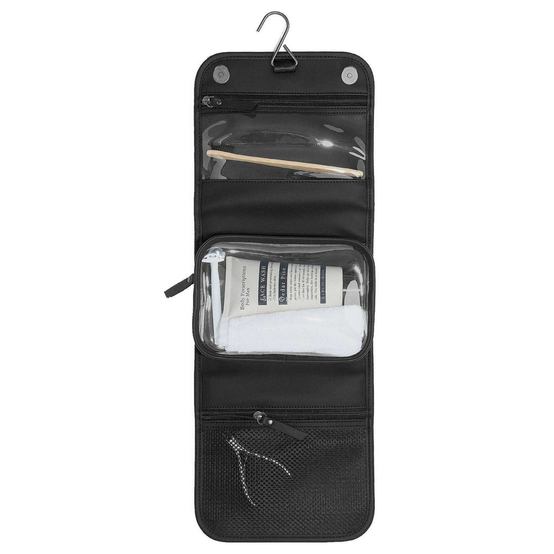 • 2 Internal Zipped Compartments , Removable Clear Toiletry Bag , Hanging Hook