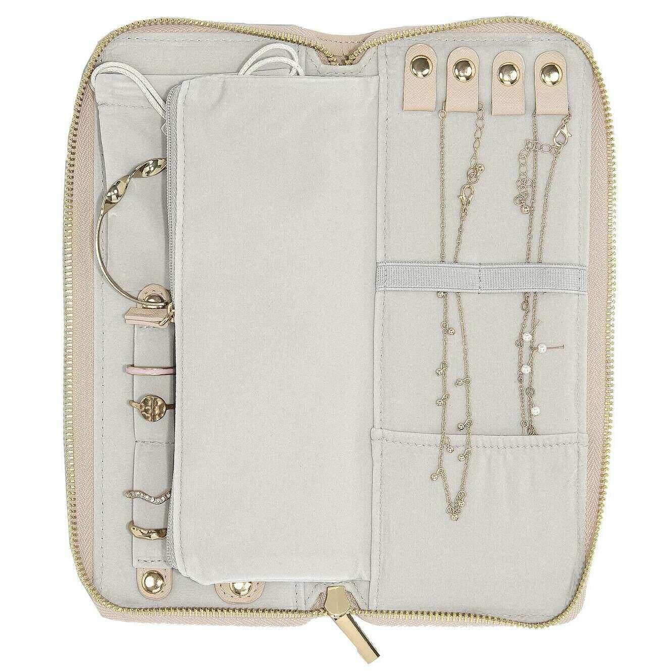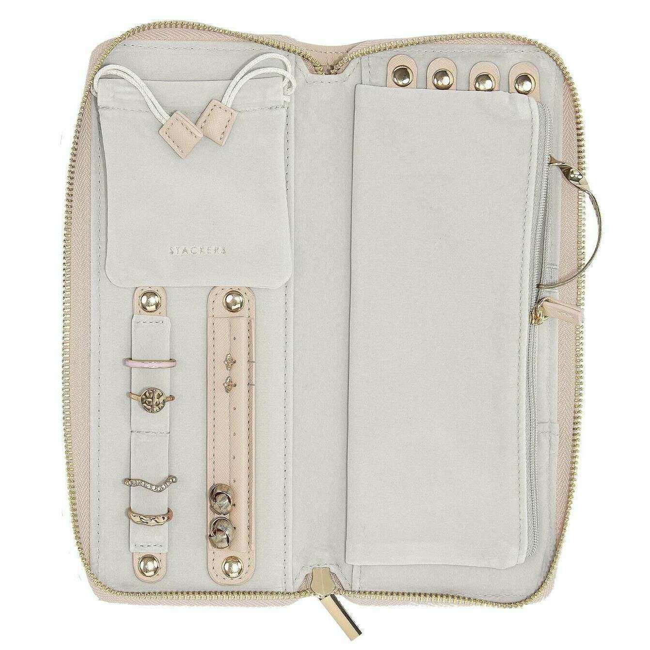Brought to you by the brand Stackers, this blush woven pink women's jewellery roll is made from faux leather. It measures 3cm(height) x 24.5cm(width) x 10.3cm(depth). All the jewellery boxes come complete with stackers packaging. The Stackers Jewellery Roll - Blush Woven Pink is a must have when on the go! This pink jewellery roll is perfect for travelling with jewellery and includes a zip closure for extra security.