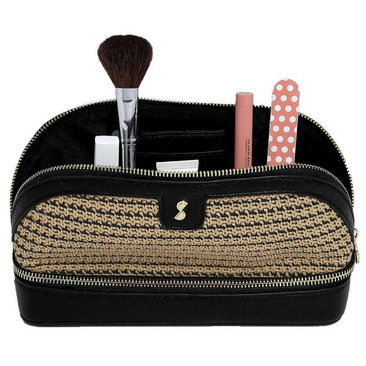 Stackers Raffia Cosmetic Bag - Black Raffia