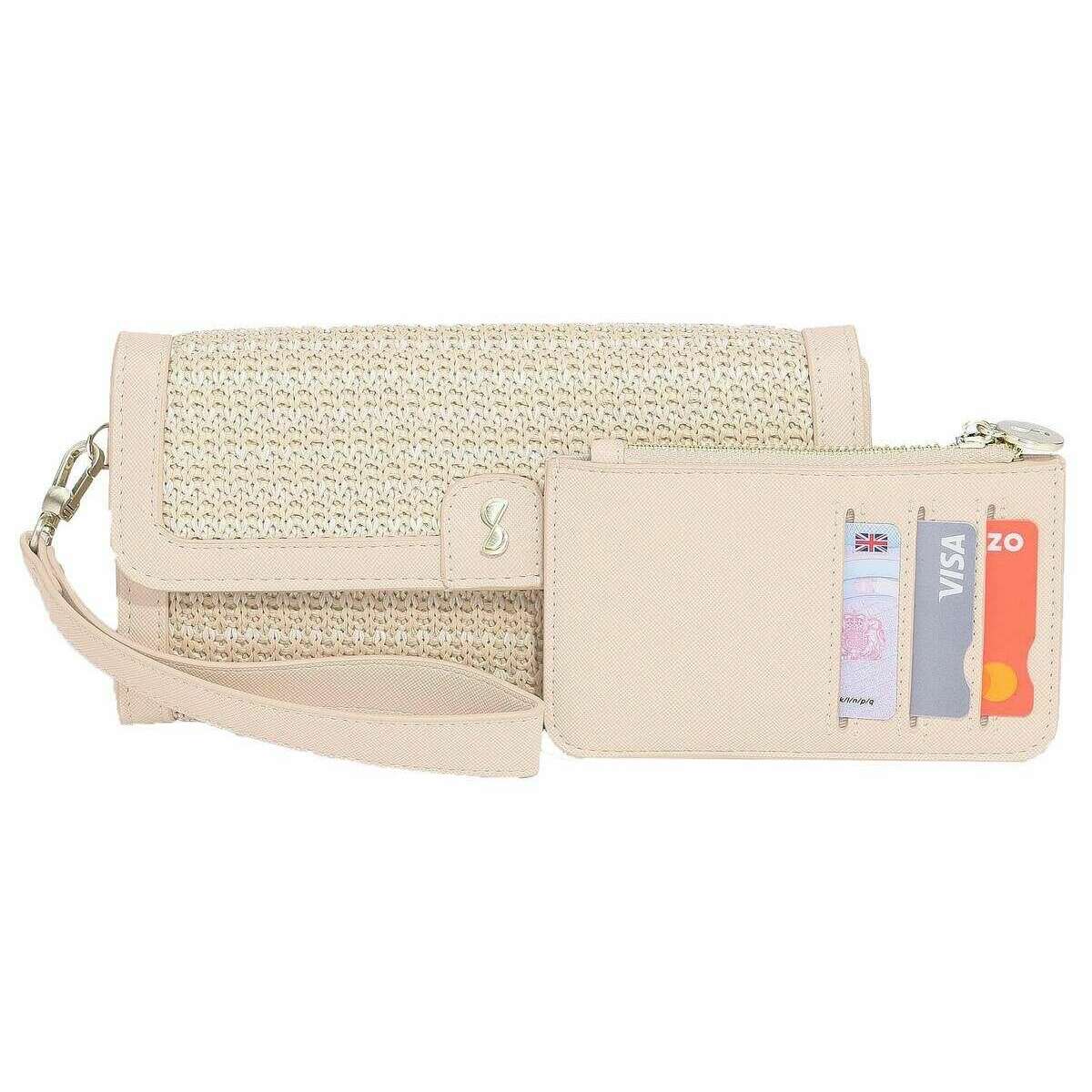 Using pink raffia effect and faux leather, this raffia purse by Stackers is perfect for women and a must have. All the purses come complete with stackers packaging. The Stackers Raffia Purse - Blush Pink Raffia is a must have when on the go! This unique and trendy pink raffia purse features multiple pockets for money or cards, a removable card purse and a cosmetic mirror. Comes complete with a removable wrist strap for diverse use.