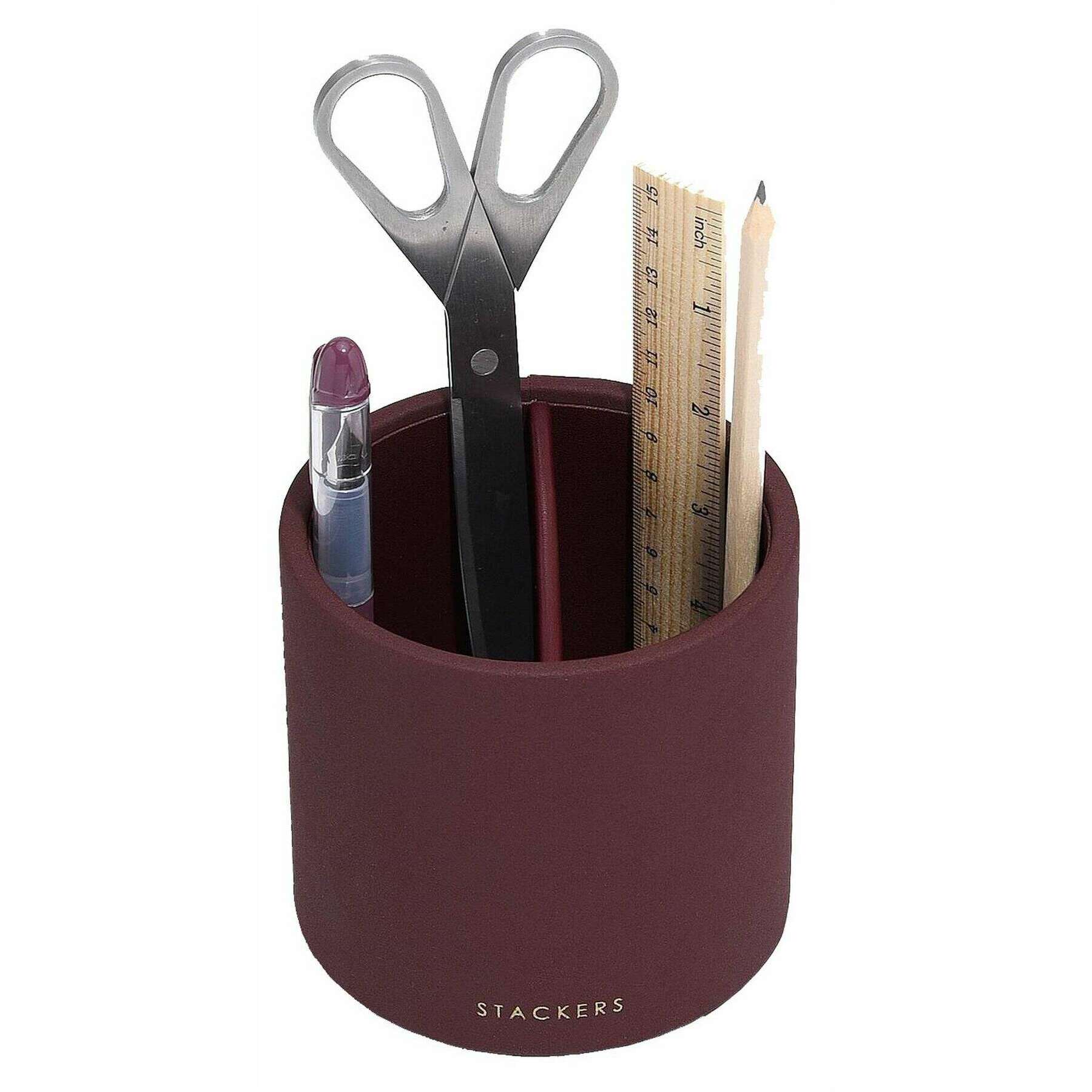 Designer Stackers has brought you this women's faux leather desk accessory using garnet burgundy tones. It measures 14.3cm(height) x 10.7cm(width) x 10.7cm(depth). All the desk accessories come complete with stackers packaging. The Stackers Stationery Pot - Garnet Burgundy is a must have for any desk! This burgundy stationary pot is perfect for storing stationary and even has a hidden tray for smaller items underneath.