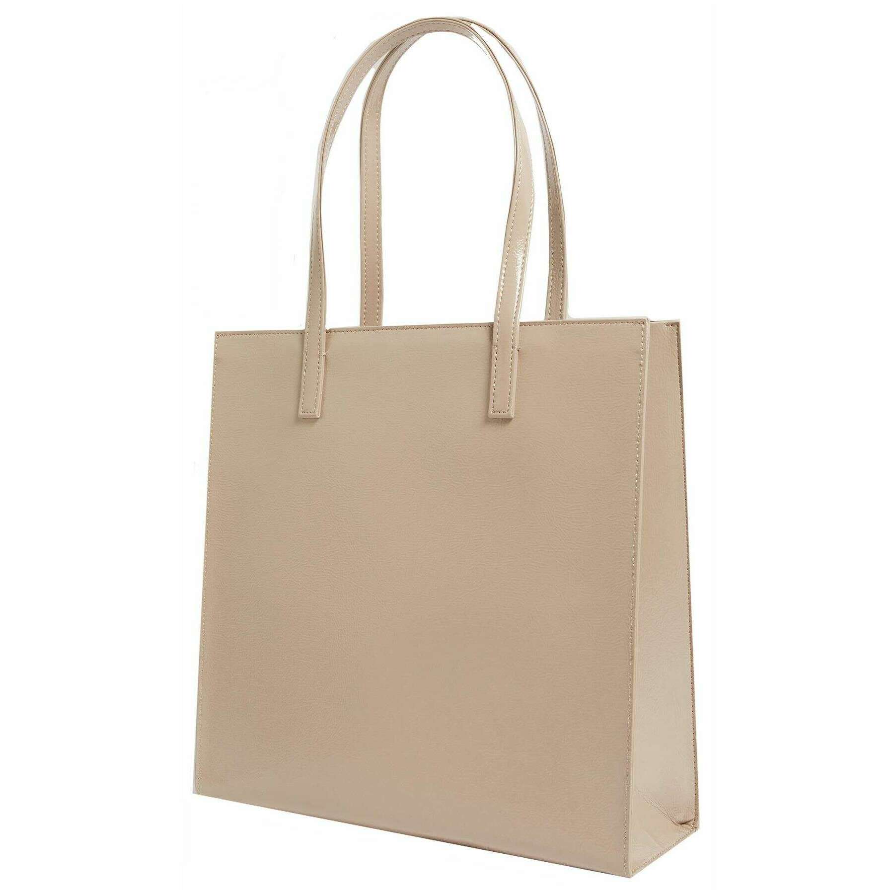 This crinkon crinkle large icon bag for women is fashioned by the brand Ted Baker in a beige colour and is made from 100% polyurethane. It measures 34.5cm(height) x 34.5cm(width) x 12cm(depth). All the bags come complete with ted baker packaging. The Ted Baker Crinkon Crinkle Large Icon Bag - Stone Beige offers a sophisticated choice, ideal for any occasion. Simplistic yet elegant this tote bag is a practical choice, giving you plenty of space to hold your belongings whilst also offering an internal pocket for organising. The stylish contrasting large Ted Baker branding adds a special detail enhancing the style of the bag. This simple and trendy design will make a great addition to any outfit.