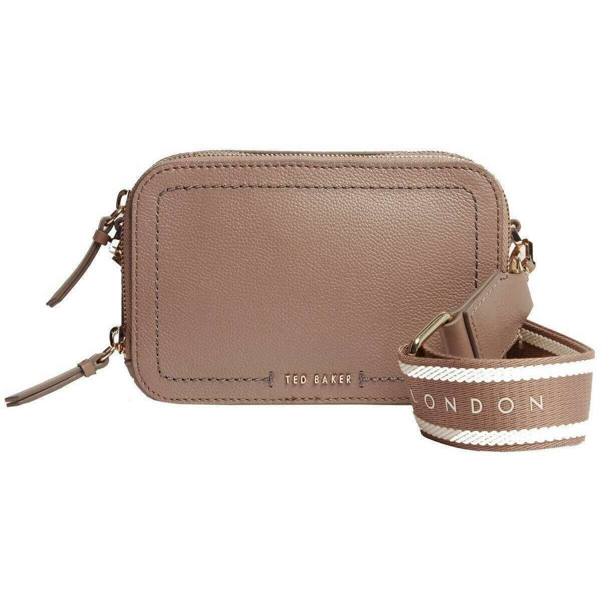 Brought to you by the brand Ted Baker, this taupe women's linzie webbing leather small crossbody camera bag is made from 100% bovine leather. It measures 11cm(height) x 17cm(width) x 5cm(depth). All the bags come complete with ted baker dust bag. The Ted Baker Linzie Webbing Leather Small Crossbody Camera Bag - Taupe is a stunning hands-free bag to ensure comfort and practicality. The double zip compartments, the internal side pocket and external back pocket allows extra storage to ensure all of your essential items are with you on the go. This stunning design features the signature logo, stitch detailing on the front and gold hardware. The detachable adjustable strap is co-ordinated with the colours featured on the bag itself allowing you it to match your outfits perfectly.