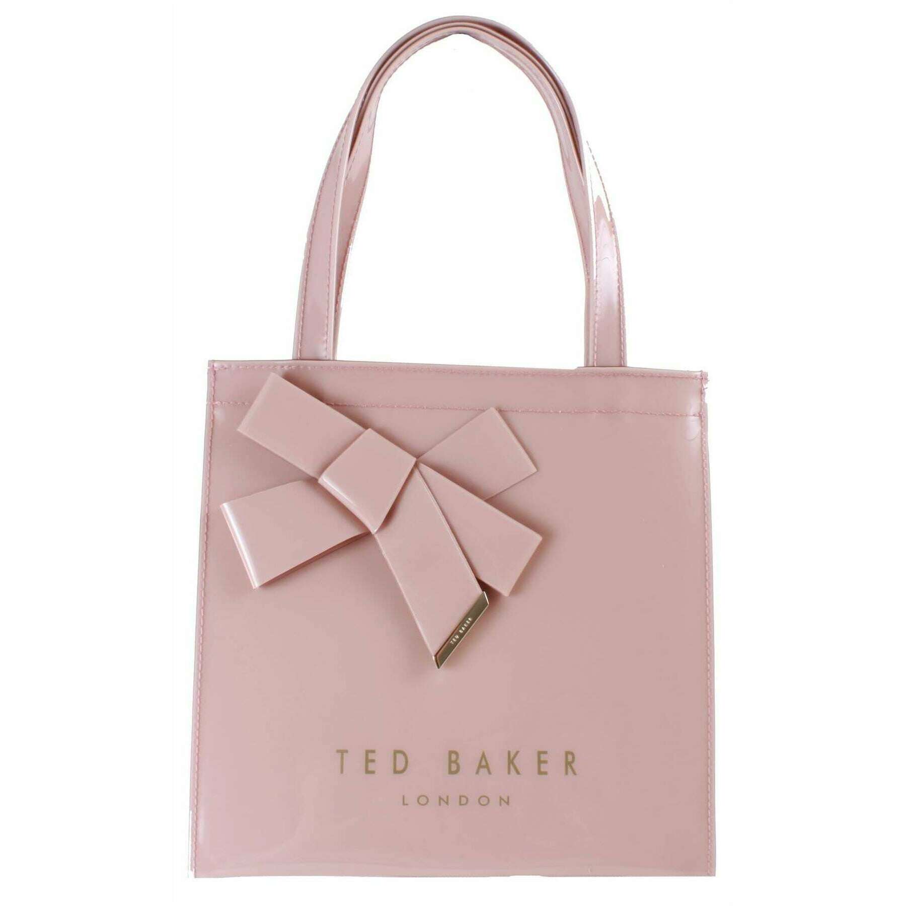 This women's niacon bow detail small icon bag has been made from 100% pvc, featured in a pink colour and is from the brand Ted Baker. It measures 25cm(height) x 25cm(width) x 5cm(depth). All the bags come complete with ted baker packaging. The Ted Baker Niacon Bow Detail Small Icon Bag - Pink is a simplistic yet stylish piece, perfect if you are looking for something a little different with its gorgeous shiny finish. Inside is a single compartment which will fit your everyday essentials, and the external bow detail gives it modern charm. You cand find branding throughout so make this a companion you do not want to leave the house without.