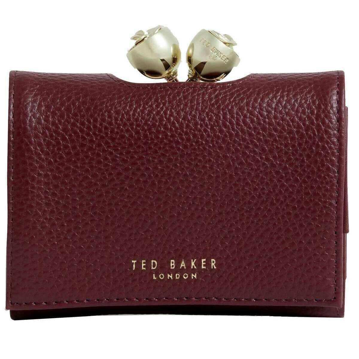 Designer Ted Baker has brought you this women's 100% bovine leather purse using wine burgundy tones. It measures 8cm(height) x 14.5cm(width). All the purses come complete in a ted baker gift box. The Ted Baker Roosa Rose Detail Small Leather Bobble Purse - Wine Burgundy has been beautifully crafted to provide sophistication and elegance while organising your cards and cash effortlessly. A standout to this purse are the gorgeous rose bud clasps which offer feminine flair to a simple silhouette. Finished with branding on the front, this purse would make the perfect treat to yourself or a thoughtful gift.