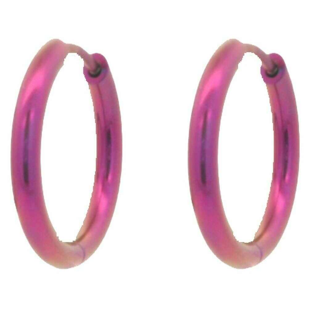 Ti2 Titanium Medium Round Hinged Hoop Earrings - Pink