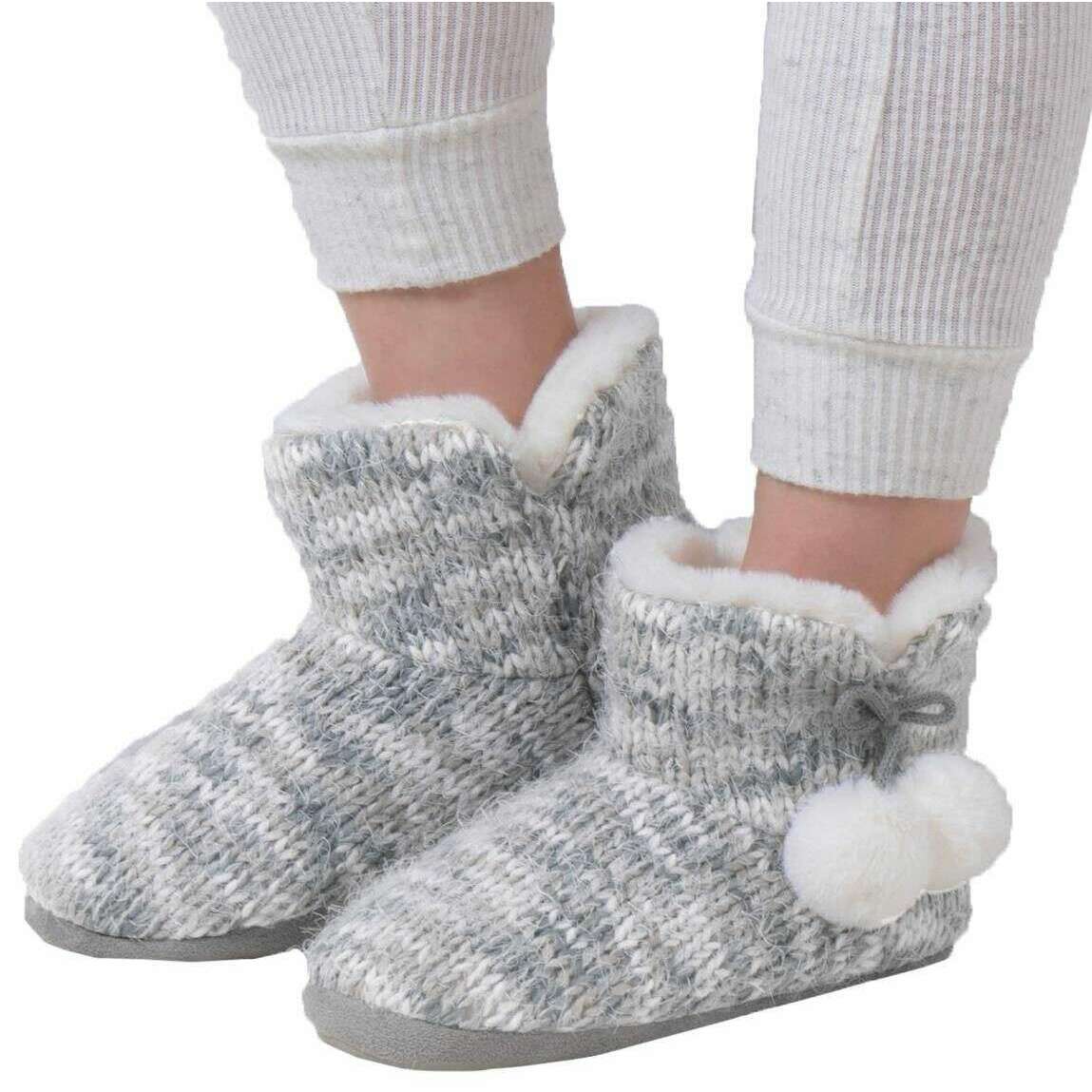 These women's space dye knitted boot slippers by the brand Totes Toasties are made from 60% polyester, 40% acrylic and synthetic suede and are showcased in grey. Also the grey slippers are designed in a 2-tone pattern, All the slippers come complete with totes toasties packaging. The Totes Toasties Space Dye Knitted Boot Slippers - Grey will pair perfectly with any of your wintery PJs for a complete cosy look to relax after a long cold day. The boot length not only keeps your feet cosy but also your ankles with the soft and warm faux fur lining, whilst the added memory foam ensures optimal comfort whilst walking around the house. Completing this look is the girly pom pom bow detail.