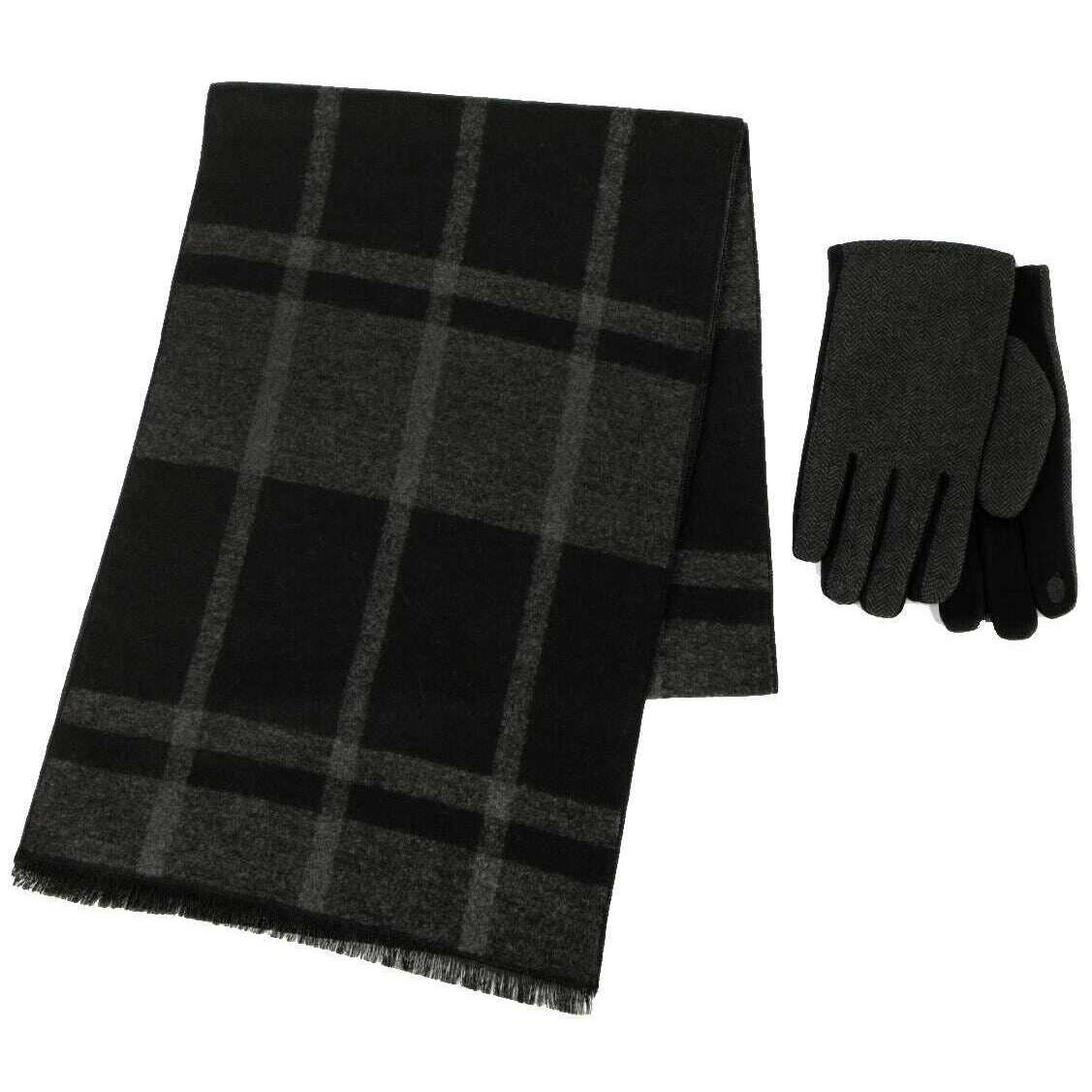 Totes Toasties Wool Blend Check Scarf and Thermal Lined Gloves Gift Set - Black