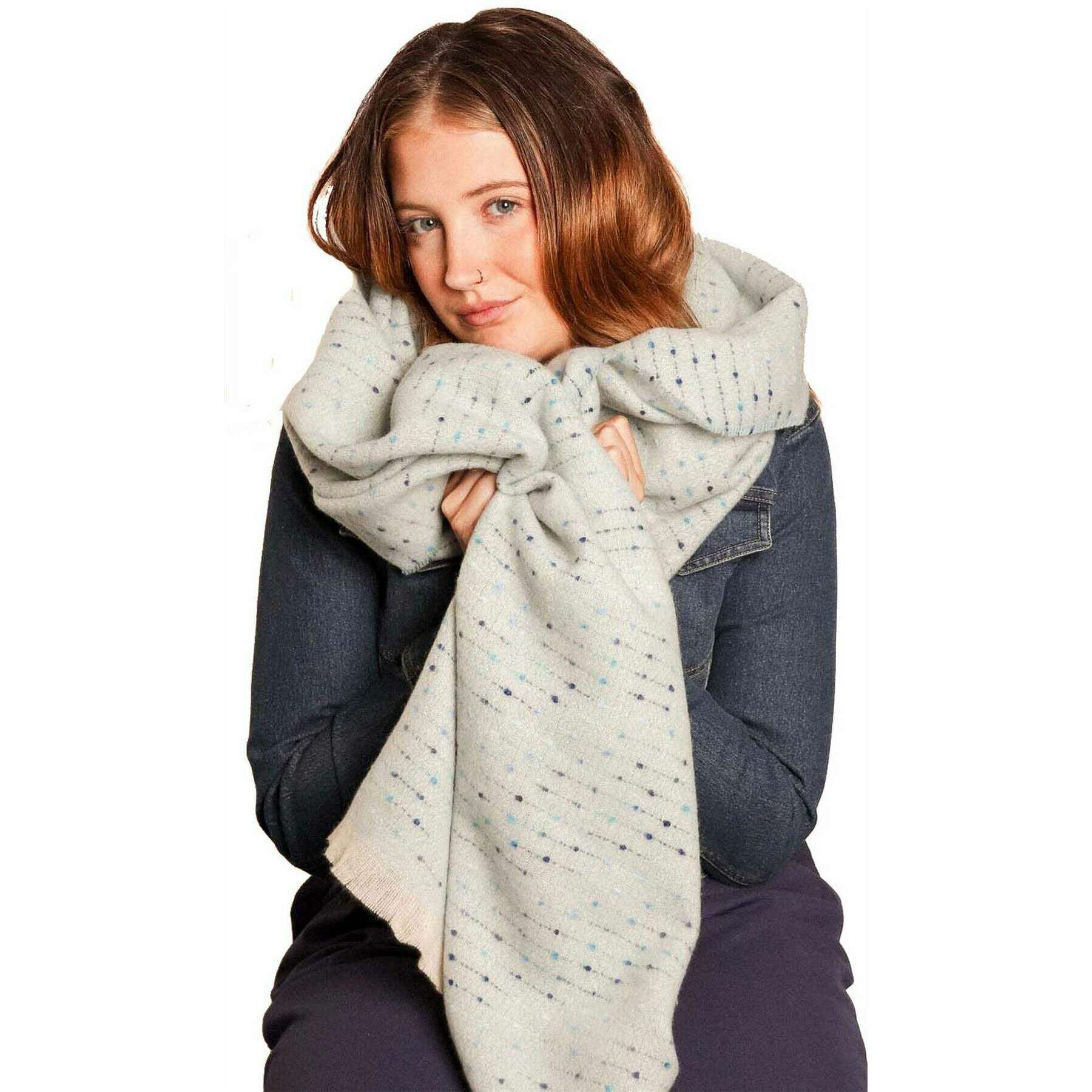 Designer Zelly has brought you this women's 65% polyester and 35% viscose scarf using blue tones. It measures 180cm(height) x 65cm(width). It is recommended to machine wash at 30 degrees to keep this scarf in good condition. All the scarves come complete in zelly packaging. The Zelly Speckled Winter Weight Scarf - Blue allows you to indulge in everything warm and colourful, bringing vibrant flair to your winter wardrobe. Its beautiful, fringed ends offer a timeless touch and the super warm material will keep you wrapped up all cosy and warm like a much-needed hug. Pair this with your favourite beanie hat and gloves and you are all set to brave the cold in absolute style.